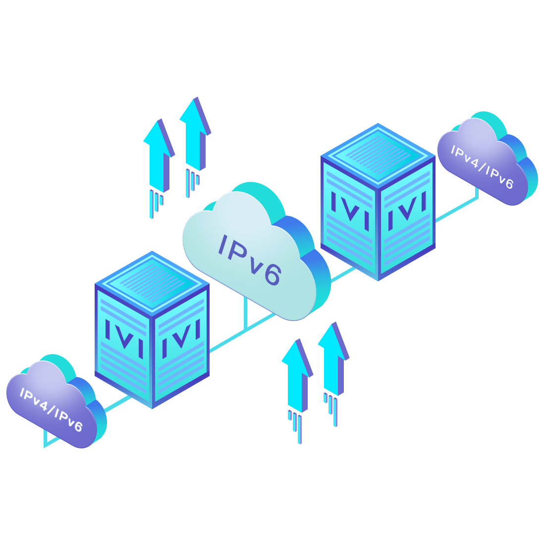 對正在進(jìn)行IPv6整體升級規(guī)劃的運(yùn)營商,應(yīng)用IPv6升級方案2.5,通過IVI無狀態(tài)翻譯技術(shù)和純IPv6接入網(wǎng)絡(luò),為雙??蛻舳撕碗p棧服務(wù)器提供連通服務(wù)。